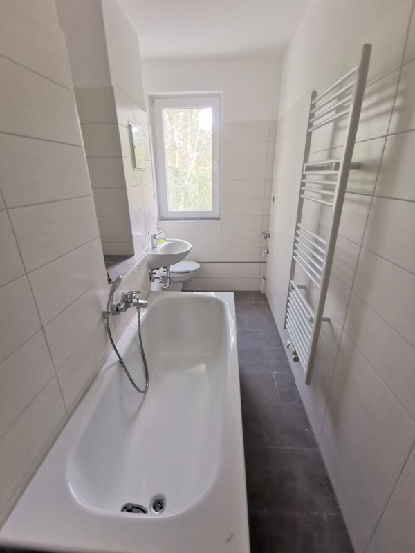 ... hat ein modernes Tageslichtbad mit Wanne sowie Handtuchheizkörper