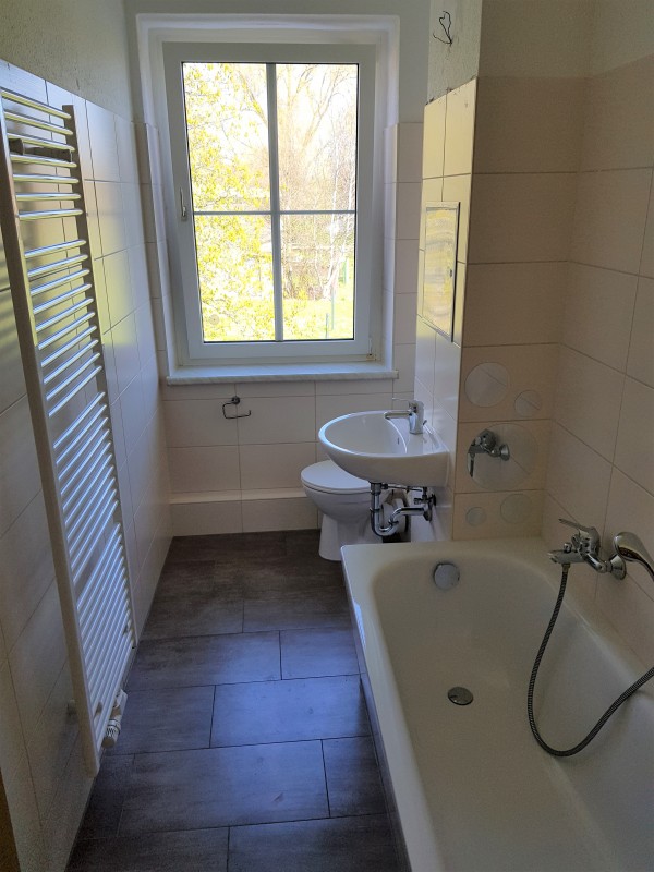 Bad mit Badewanne, PKW-Stellplatz möglich, wenn verfügbar
