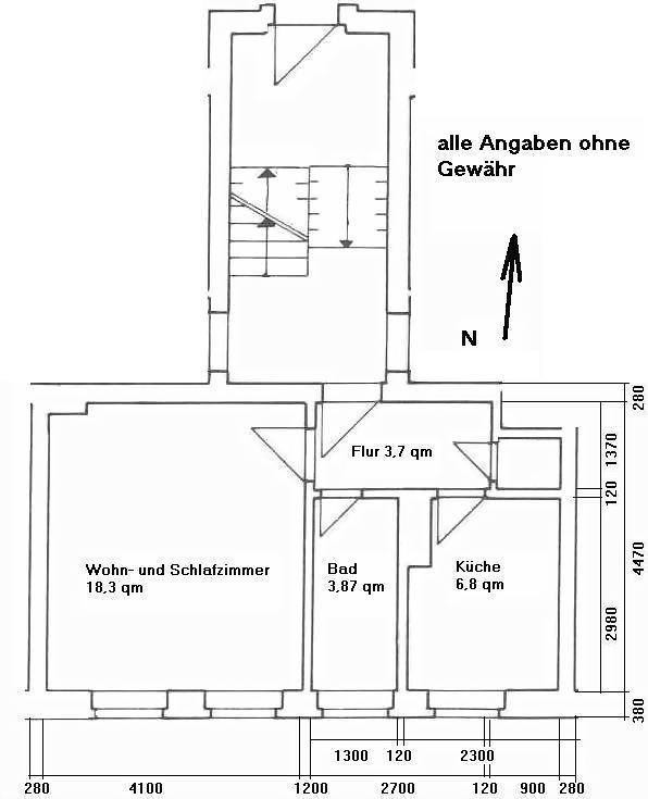 Die sanierte 1-Raumwohnung befindet sich im 1. Obergeschoss eines Mehrfamilienhauses und besitzt folgende Ausstattungsmerkmale: