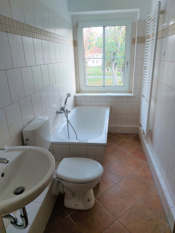 Bad mit Badewanne, PKW-Stellplatz möglich, wenn verfügbar