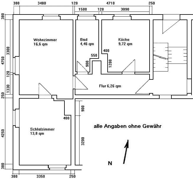 - ohne Tapete, auf Wunsch wird die Wohnung auch malermäßig instandgesetzt (Grundmiete zzgl. 0,50 €/m²/Monat)